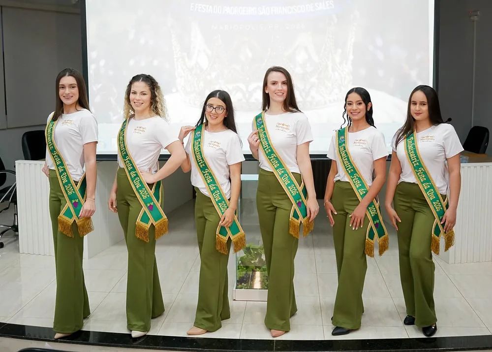 Dentro da programação dos preparativos para a Festa da Uva e do Padroeiro São Francisco de Sales, de Mariópolis, aconteceu a entrega das faixas às jovens que, de forma inédita, passam a carregar o título de Embaixatrizes da Festa da Uva 2026.